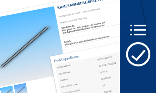 Using your customer number, we have already identified the Trützschler technology you use and included it in the web shop. In the online spare parts catalogue you will therefore only find the parts that match your machine configuration. Alternatively, you can also find the required parts using the search function, e.g. using the article number.